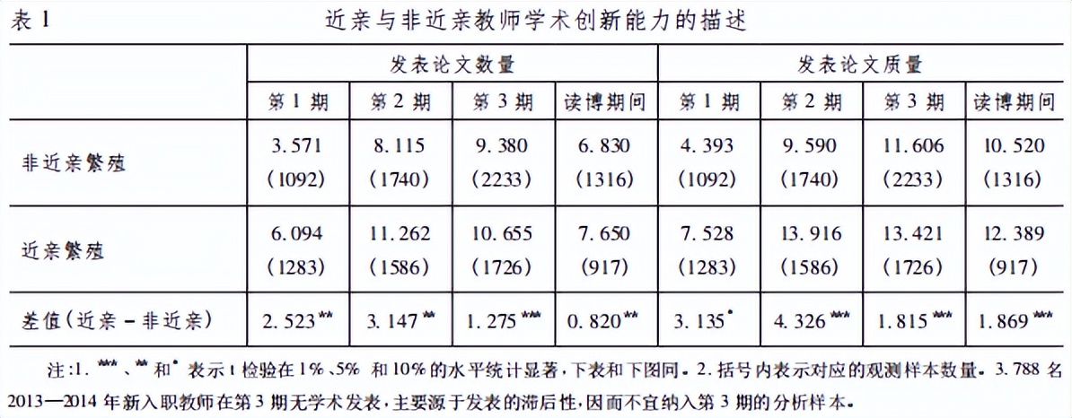 (一)留校任教是否造成近亲教师的学术创新能力更低?